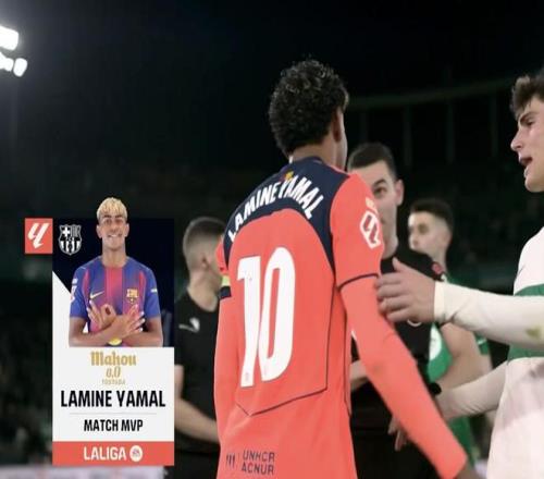 西甲第22轮,巴塞罗那客场3-1击败埃尔切,此役打入一球的巴萨前锋亚马尔当选西甲官方全场最佳球员。