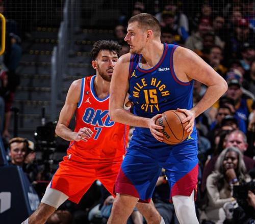 上一场打快船狂砍31分12板5助3断华丽数据的约基奇,此役面对哈滕和霍姆格伦的雷霆双塔没有打出预期的统治力,前两节只出手了2次,好在串联球队的效果不错,送出了6次助攻,但是在个人表现方面,不如亚历山大,后者半场就砍下了15+3+7的全面数据,率领雷霆带着7分的优势,回到了中场更衣室。
