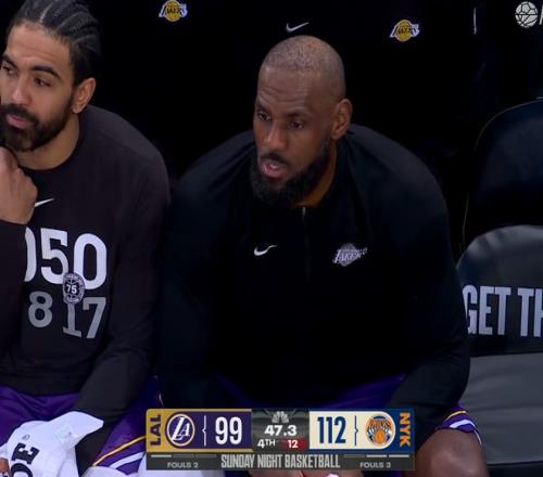 当时可以看到,人家尼克斯全队5个人在詹姆斯去上篮的时候,都已经不防守了,就看着他刷两分,因为知道这个两分是改变不了局面的两分,你去刷这个两分没有意义,这就是无非就是得分和数据我要带走,胜利我不要的意思了。