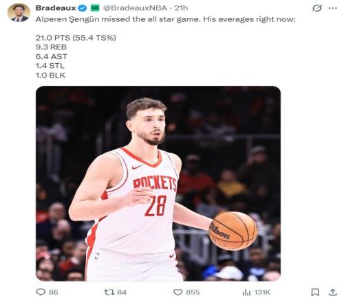 申京本赛季的确落选全明星阵容,但他场均21分9.3篮板6.4助攻1.4抢断1盖帽,这个表现并不算差。