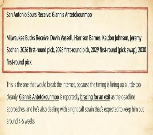 对此,你怎么看呢?你认为马刺应该推动这笔交易,打造字母哥+文班亚马的新双塔组合吗?