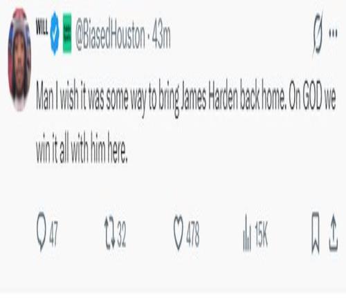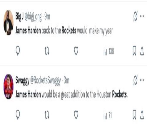 哈登可能重返休斯顿的消息出炉后,火箭球迷们纷纷发声:火箭急需一名控球后卫,哈登即将被交易的消息传出,我们有机会看到杜兰特、哈登第三次携手,如果这两人在休斯顿重聚,我们有希望拿到总冠军。