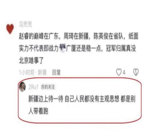 二连败后,北京首钢队球员在网上回应新疆队球迷的评论“新疆球迷边上待一待,自己没有主观思想,都是别人带着跑”,但是这句话引起了很多球迷的不满,不仅是新疆队的球迷,其他队或者其他地方的球迷也提出了异议,指责赵睿作为男篮国家队队长说话的方式不恰当,随后赵睿也有再次回应球迷为自己辩解,但是最终这件事还是以赵睿公开发文道歉告一段落。