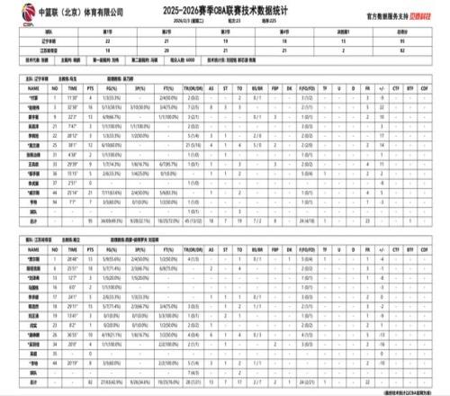2025-2026赛季CBA常规赛第二十三轮,辽宁本钢对阵江苏肯帝亚的比赛于3日晚在辽宁体育馆进行,双方在40分钟常规时间战平,辽宁本钢队最终通过加时赛,以95:82击败江苏肯帝亚。