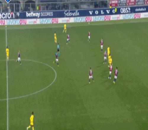 第48分钟,博洛尼亚边线球失误,拉比奥断球破门,米兰3-0博洛尼亚