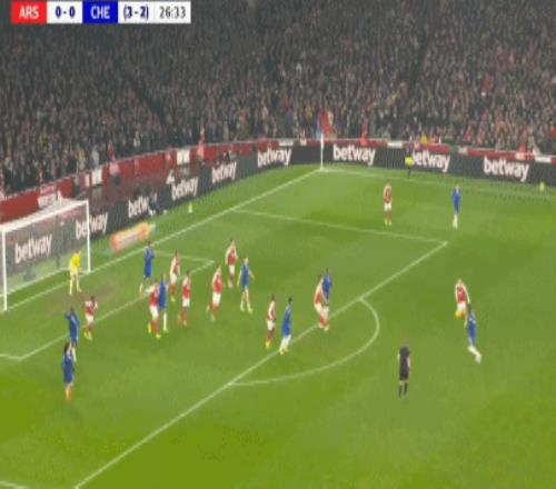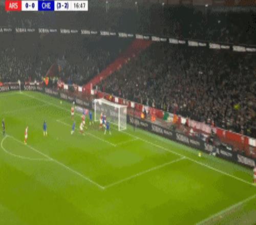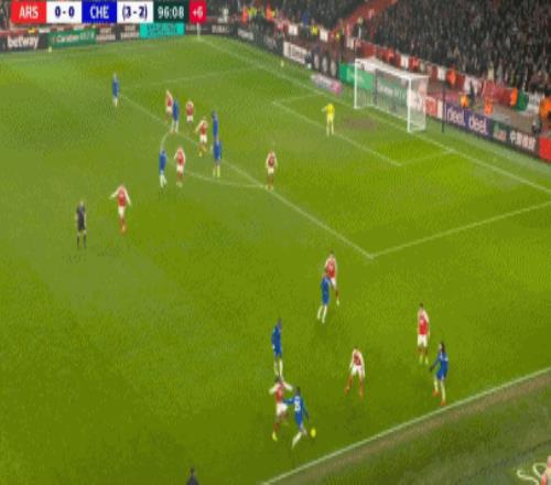 第90+8分钟,哈弗茨过掉桑切斯,随后低射破门,阿森纳1-0切尔西
