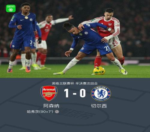 北京时间2月4日英格兰联赛杯 半决赛次回合,阿森纳对阵切尔西。比赛最后时刻,赖斯助攻,哈弗茨过掉桑切斯,随后低射破门,锁定胜局。最终比分阿森纳1-0切尔西。两回合总比分阿森纳4-2切尔西挺进英联杯决赛。