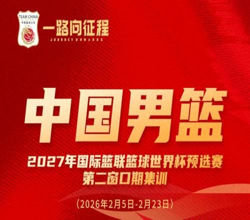 集训从2月5日开始至2月23日结束,地点为国家体育总局训练局。球队将全力备战2027年世界杯预选赛第二窗口期比赛,2月26日客场对阵日本男篮,3月1日对阵中国台北男篮(比赛地在菲律宾马尼拉)。