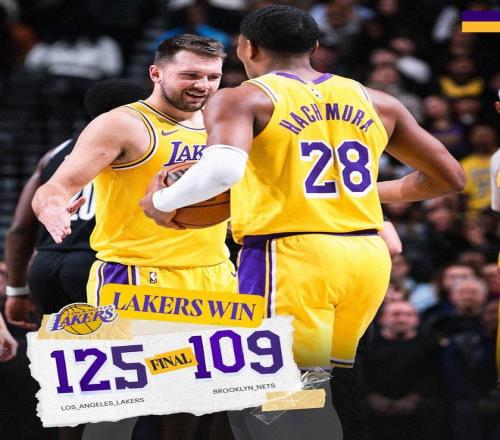 范德比尔特2罚1中,湖人领先25分,雷迪克换上板凳席末端的球员,比赛彻底失去了悬念。克内克特抢断,布朗尼空接打进,夏普回敬2+1。蒂米补篮得分,沃尔夫里突外投连得5分,雷迪克请求暂停。两队在场上练兵,时间逐渐走完。最终,湖人以125比109完胜篮网,结束了8连客。此役之后,紫金军团反超森林狼,重回西部第5。
