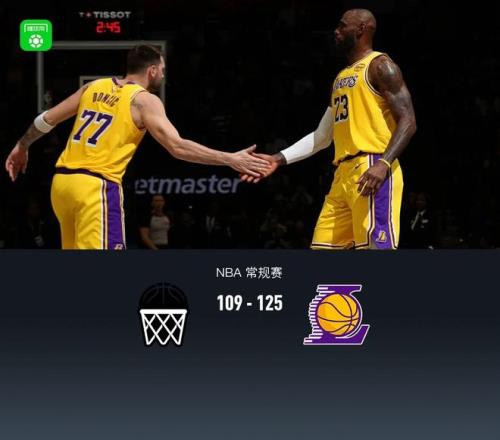 第四节,前半节湖人詹姆斯、里夫斯带队与篮网保持拉锯,后半节湖人收兵换下主力,篮网抓住机会缩小分差,全场结束,湖人125-109篮网。