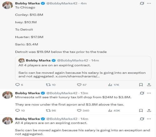 这类涉及多队、以配平薪资和调整阵容深度为目的的交易越来越普遍,它不一定是改变格局的巨星挪移,但反映了球队管理层对阵容短板的精准修补和对奢侈税体系的敏感应对,康利、赫尔特和萨里奇都是到期或接近到期的合同,这为各队保留了后续调整的余地。