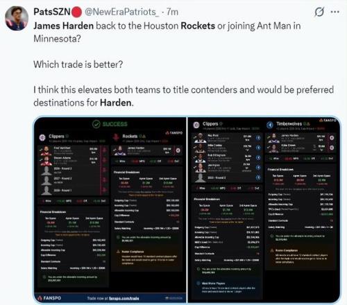 在官方消息发布之前,它更多是球迷和媒体在交易季的谈资,真正决定哈登未来的,仍然是季后赛的战绩走向,以及他与快船管理层在谈判桌前的面对面交流。