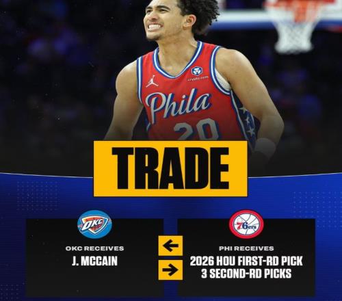 他们先从76人交易得到了贾里德·麦凯恩,为此送出了一个2026年首轮签和三个次轮签:2026年首轮签(来自火箭);2027年次轮签(雷霆、火箭、步行者和热火中顺位最高的一个);2028年次轮签(来自雄鹿);2028年次轮签(来自雷霆)。