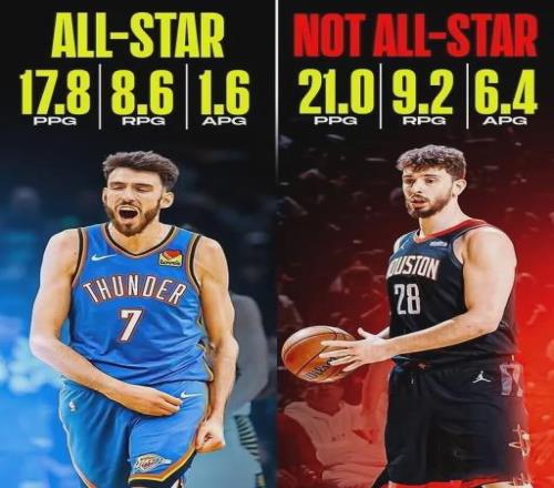 NBA全明星替补阵容公布,有人欢喜有人忧,其中争议较大的就是雷霆队切特-霍姆格伦入选,而火箭队申京落选,于是关于他俩到底谁更应该入选全明星成了热议话题,今天的球员上上测我就从数据层面将两人做个对比分析.