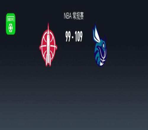 第四节火箭杰夫-格林拿下6分,黄蜂布兰登-米勒拿下7分,最终火箭99-109不敌黄蜂