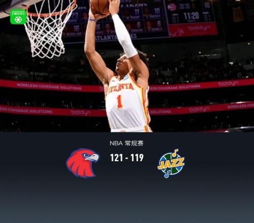北京时间2月6日NBA 常规赛,亚特兰大老鹰对阵犹他爵士。第二节爵士一度领先12分,半场老鹰61-60爵士,下半场爵士再度取得领先,比赛最后双方持续得分回应,老鹰沃克中投准绝杀,最终老鹰121-119爵士。