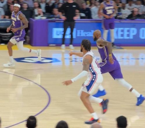末节开场里夫斯连续两个三分球,但詹姆斯差点三不沾,詹姆斯面对恩比德的防守竟然被断了,一个比他高10厘米的中锋掏球他都护不住!詹姆斯助攻斯玛特一个,詹姆斯制造马克西第五次犯规,随后勒布朗还完成了一个君临天下的暴扣。