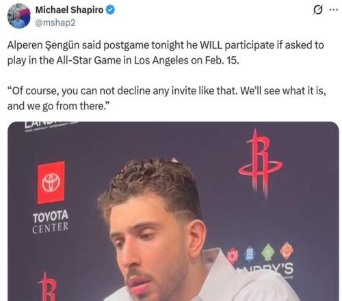 结果在表现如此糟糕的情况下,赛后谈及全明星话题,申京仍表示如果全明星赛邀请他参赛,他一定会出战。
