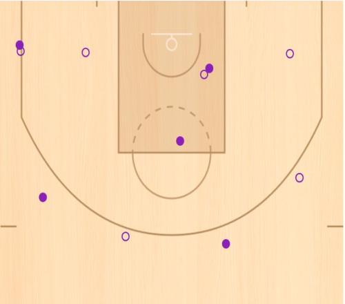 从战术地位上看,陈林坚本场比赛获得了11次出手机会,远远高于联赛中场均7.2次出手。这在一定程度上说明,当山东队能够把更多机会输送到陈林坚手中时,他是一定可以给球队带来更大帮助的。与此同时,从投篮分布上看,陈林坚本场比赛并没有过多地埋伏在底角,而是更多地提到上线接球。这才是一个核心射手的打法,也是他在福建队时更熟悉的打法。陈林坚有5次在高位的投篮,投进3球,命中率高达60%。