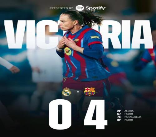 2月6报道 西班牙王后杯1/4决赛,巴萨女足客场4比0击败皇马女足,晋级下一轮。据One Football统计,巴萨女足与皇马女足历史交手进球77比10,巴萨女足占据绝对优势。另外三支晋级王后杯四强的球队是马竞女足、莱万特巴达洛纳女足和特内里费女足。