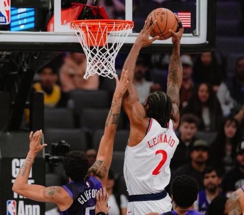 首节比赛,两队进攻效率都不高,快船节末还陷入得分荒,立马落入被动局面,第一节比赛结束,国王27-17领先快船10分。次节比赛开始,米勒霸王硬上弓炸球上篮,帮助快船先下一城,雷诺油漆区大号勾手予以还击,邓恩的追身大号三分球一击命中,德罗赞的古典中距离跳投同样也有,小卡单刀赴会,冲击篮下制造杀伤,站上罚球线两罚全中,威少不甘示弱,高难度扭腰对抗上篮,打成一个2+1,大洛佩斯禁区吃饼,利用梦幻脚步晃开防守,转身上篮丝滑命中。第二节比赛,快船队进攻火力强势回暖,很快扳平比分,双方回到同一起跑线,半场比赛战罢,国王49-48领先快船1分。