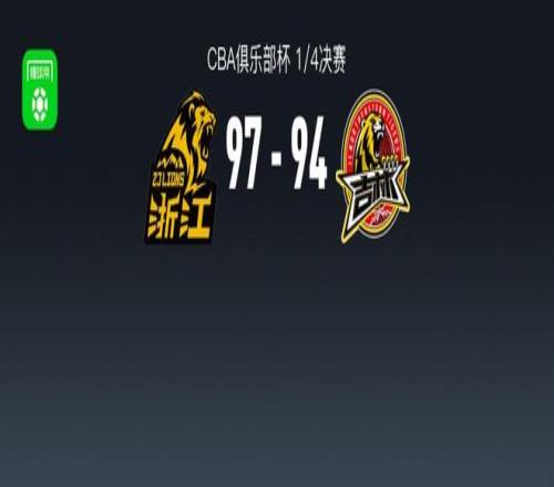 北京时间2月7日CBA俱乐部杯 1/4决赛,浙江方兴渡对阵长白山恩都里。半场广厦47-53吉林,最终广厦97-94吉林。浙江方兴渡雷琼-塔克48分6板11助,亚卡尔-桑普森20分11板1助;长白山恩都里栾利程18分3助,段立谦14分2板4助。