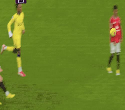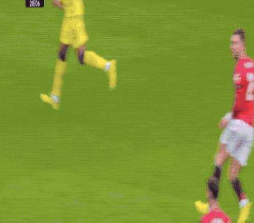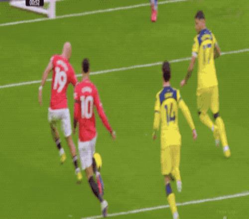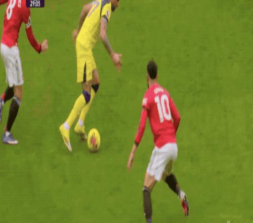 第23分钟,阿玛德迪亚洛吸引4名防守球员后传球,B费顺势扫射,将球打偏。