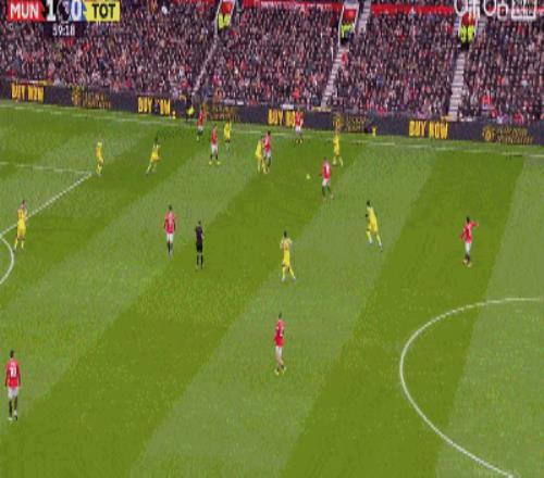 第38分钟,曼联战术角球开出,梅努低平球传到禁区,姆伯莫精准推射破门,曼联1-0领先热刺。