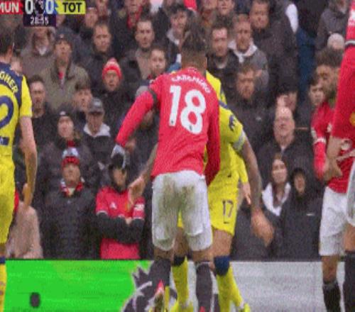 第29分钟,罗梅罗后场右脚直接踩在卡塞米罗脚踝上,主裁直接出示红牌将其罚下,热刺剩10人应战。