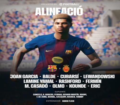 西甲第23轮,巴萨主场迎战马洛卡,赛前巴萨首发阵容出炉,具体名单如下: 巴萨首发:霍安·加西亚 / 孔德、库巴西、埃里克·加西亚、巴尔德 / 卡萨多、奥尔莫 / 亚马尔、费尔明·洛佩斯、拉什福德 / 莱万多夫斯基