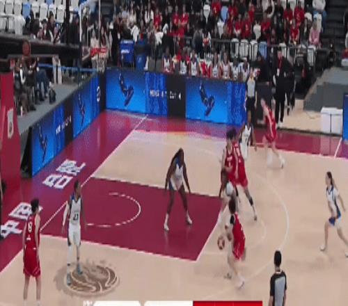 刘禹彤很有冲击力,篮下的脚步很灵活,在韩旭、李月汝在海外效力的情况下,中国队也在尝试各种中锋选择,刘禹彤拿分: