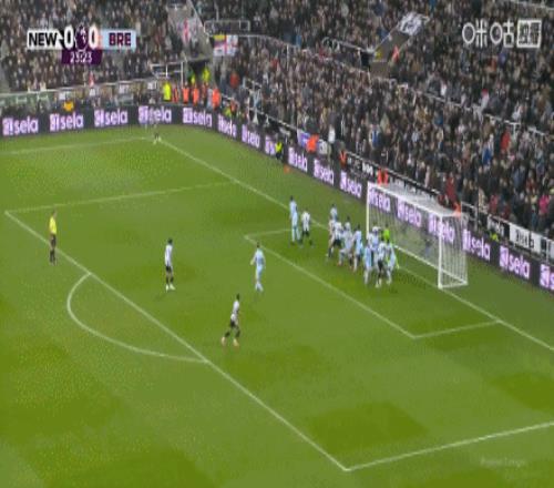 第23分钟,纽卡率先打破僵局,博特曼头槌破门,纽卡1-0布伦特福德