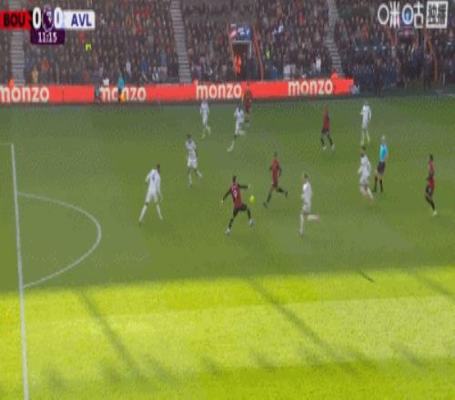第22分钟,摩根-罗杰斯右路劲射破门,维拉1-0领先伯恩茅斯