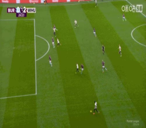 第12分钟,萨默维尔单刀面对门将,轻挑破门,伯恩利0-1西汉姆联