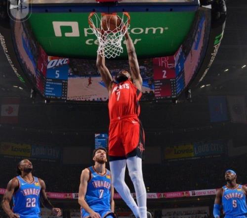 申京自投自抢送助攻,小贾巴里·史密斯三分一箭穿心,新援麦凯恩替补登场,迎来雷霆生涯首秀。谢泼德突破低手上篮高打板命中,火箭首节28-28战平雷霆。