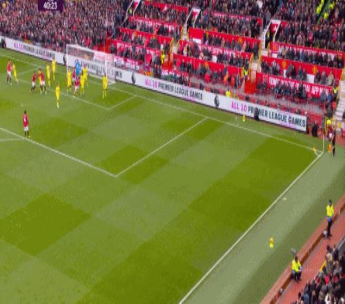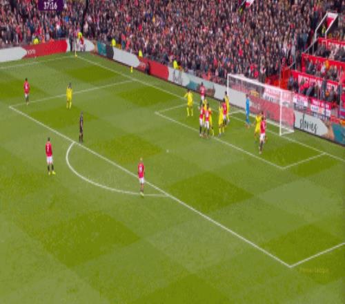 于是在30分钟后,曼联就形成了多打一人,这在主场是清晰的优势,所以在第38分钟,曼联通过中路配合和争抢制造的角球,完成了比分的领先: