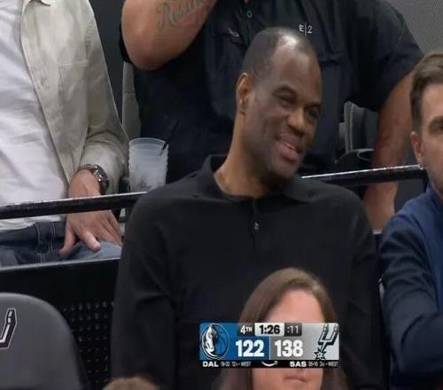 无独有偶,队史首人、马刺名宿“海军上将”大卫·罗宾逊今日正好也在现场观战。