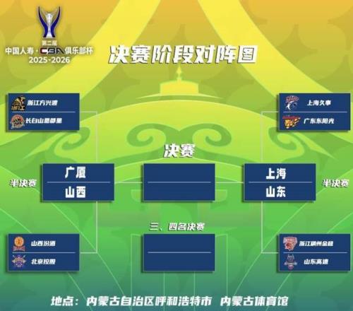 CBA俱乐部杯四强尘埃落定,一场场惊心动魄的对决,点燃了新赛季的激情火花!上海、山东、广厦、山西四强出炉,半决赛对阵正式揭晓:2月8日晚上19:35,上海男篮 vs 山东男篮,2月9日晚上19:35,广厦男篮 vs 山西男篮,冠军奖金高达200万元,亚军140万,季军100万,第四名70万,每一场都是荣誉与真金白银的终极博弈!