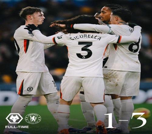 切尔西客场3-1击败垫底的狼队后,蓝军豪取联赛四连胜,在积分榜上进一步缩小与前四的差距,只比第四的曼联少1分。狼队继续深陷降级泥潭,保级形势愈发严峻。这场比赛的胜负悬念在上半场便基本揭晓,帕尔默的帽子戏法与若昂·佩德罗的两次造点,成为蓝军客场奏凯的最大功臣,下半场狼队虽扳回一球,但难以逆转败局,切尔西用一场胜利延续了新帅罗塞尼尔上任后的良好势头。