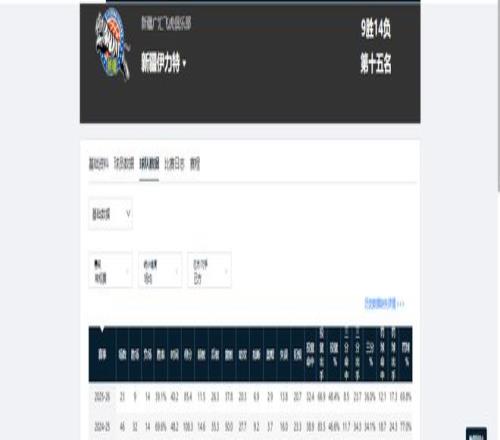 上赛季常规赛,新疆男篮取得32胜14负,胜率为69.6%;本赛季第一阶段过后,他们的成绩为9胜14负,胜率仅为39.1%,该胜率相比上赛季下滑了30.5个百分点。
