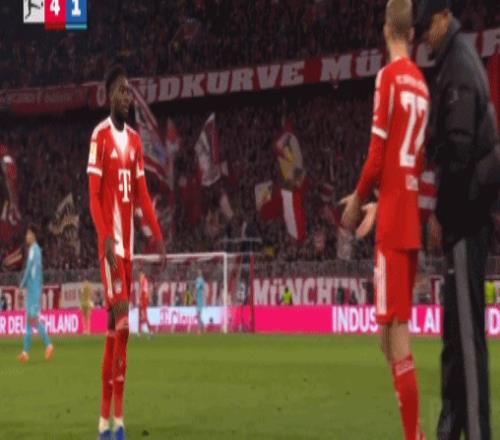 第79分钟,莱默尔伤愈登场,阿方索-戴维斯被换下
