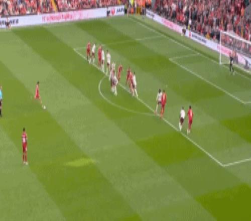 比赛的第74分钟,利物浦获得禁区前任意球机会,索博斯洛伊右脚劲射,皮球划出诡异弧线之后击中右侧立柱反弹入网。