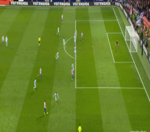第83分钟,格列兹曼鞋尖越位,转播给出半自动越位系统画面