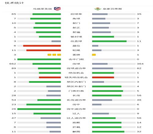 北京时间2月9日西班牙足球甲级联赛 联赛 第23轮,马德里竞技主场对阵皇家贝蒂斯。上半场安东尼内切远射破门,补时阶段卢克曼头球破门,但越位进球无效。下半场格列兹曼造迭戈-略伦特乌龙,但裁判示意此前越位,进球无效。最终马竞两球被吹0-1不敌贝蒂斯。