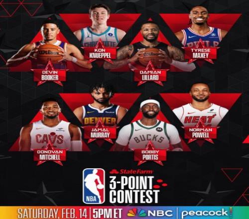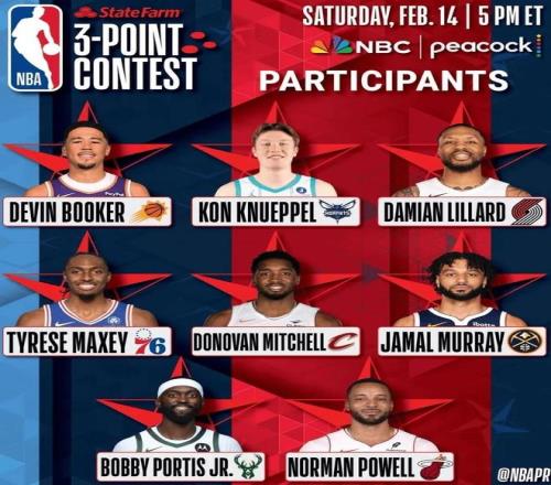 除此之外,还有马克西、米切尔、穆雷、波蒂斯与鲍威尔一众好手参赛角逐三分大赛冠军。