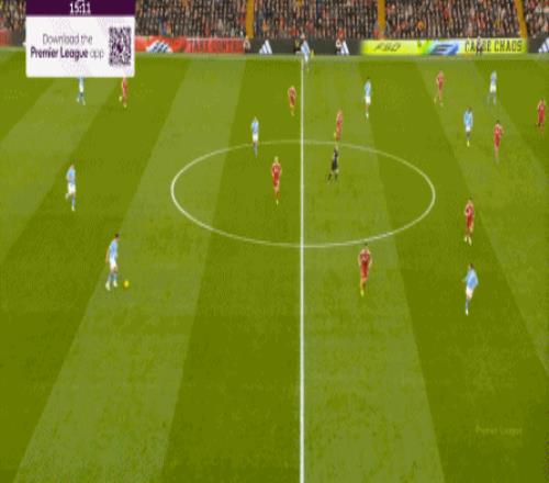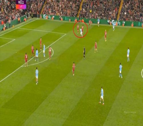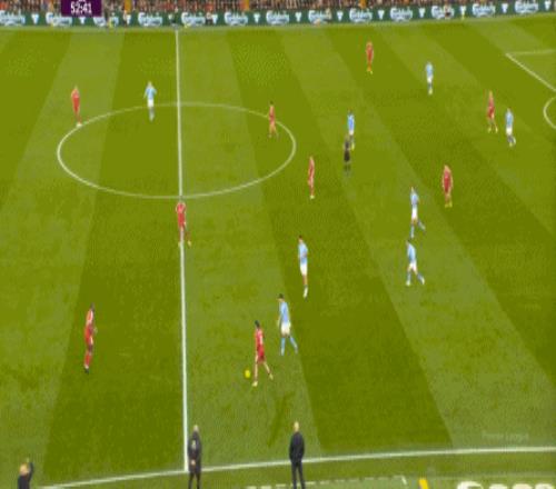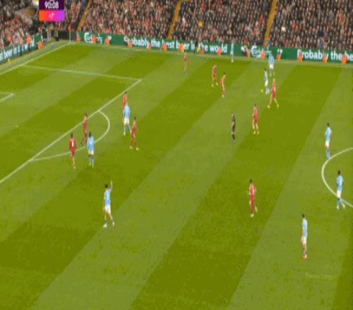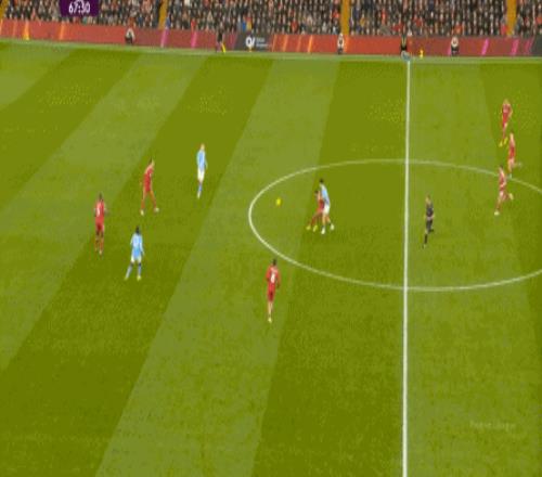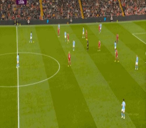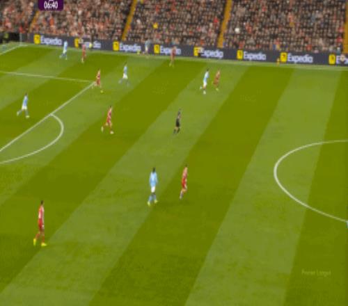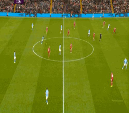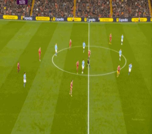曼城则在中路持续制造着利物浦的盯人和防守空当: