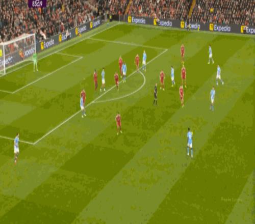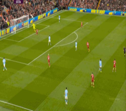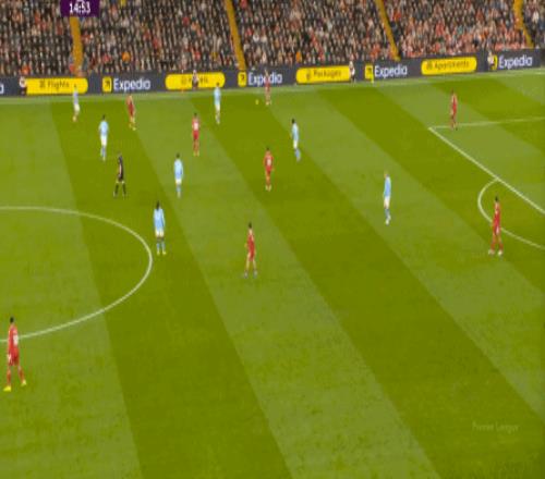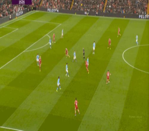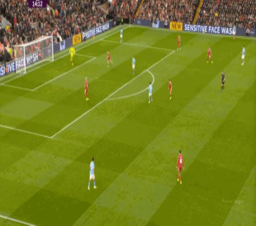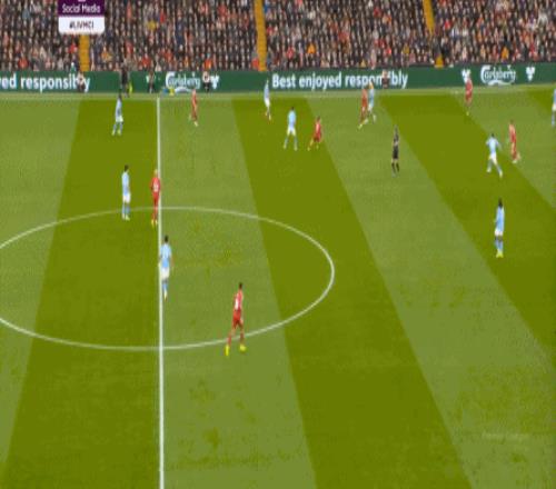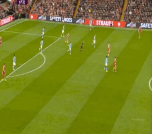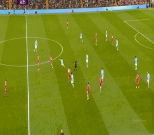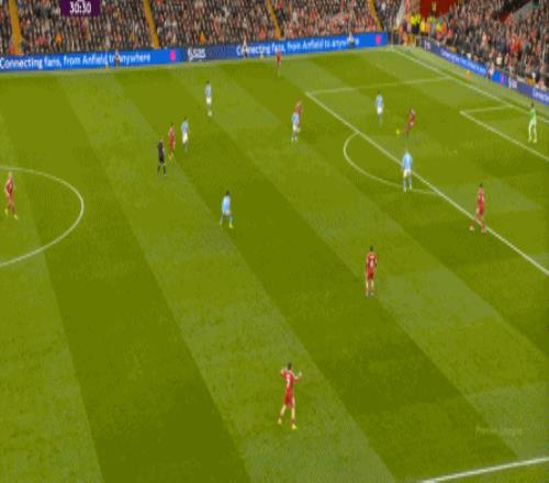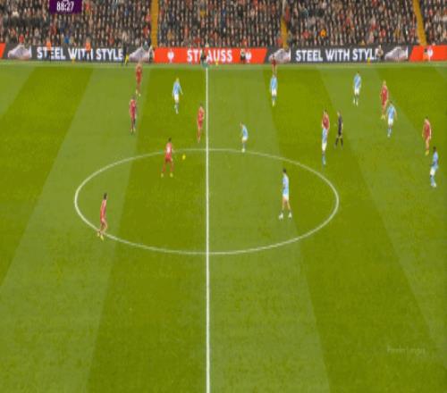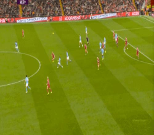 于是,在真的通过进攻画面调动起场上的情绪之后,利物浦开始能将压力施加到曼城的后卫身上了: