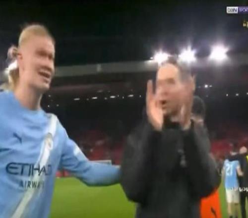 哈兰德和福登一起劝说前利物浦助理教练佩普-林德斯加入曼城客队球迷区的庆祝活动,这段视频显示他们想把瓜迪奥拉的得力助手推向客场球迷,在社交媒体上引发了热烈讨论。