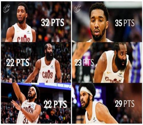 赛后骑士队也晒出哈登加盟以来,过去两场骑士队三大核心的数据表现,米切尔连续砍下30+,哈登与阿伦连续交出20+表现。