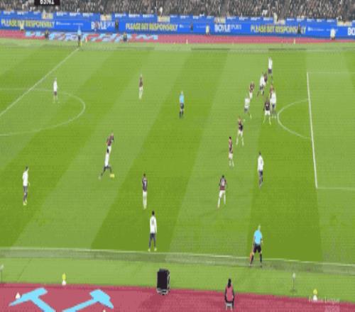 第50分钟,西汉姆联后场大脚传球,卢克肖卡位失败又被过掉,鲍文下底传中,绍切克插上抢点破门。
